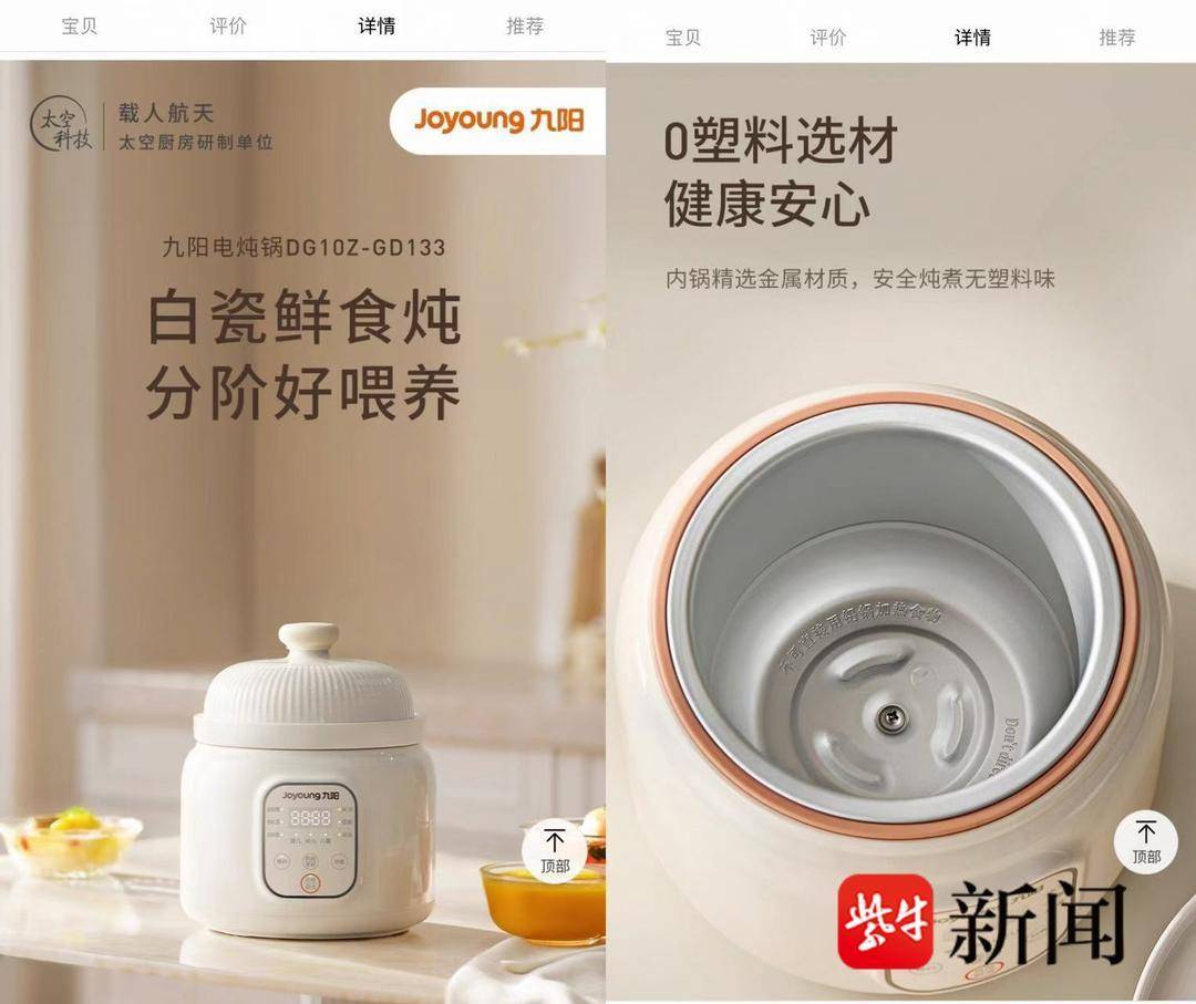 近日,有消费者在社交平台发帖反映,其购买的一款九阳宝宝电炖锅使用数月后,仍能闻到塑料味。该消费者拆解产品后发现,内部塑料已经融化,部分位置甚至已经发黑碳化,因此质疑产品有设计缺陷。记者了解到,该产品在电商宣传页面上标注了“0塑料选材”“安全炖煮无塑料味”等字样。目前,电商平台多数品牌旗舰店铺已无此款商品在售,另有部分用户就相关问题向商家反馈后,已成功退货退款。