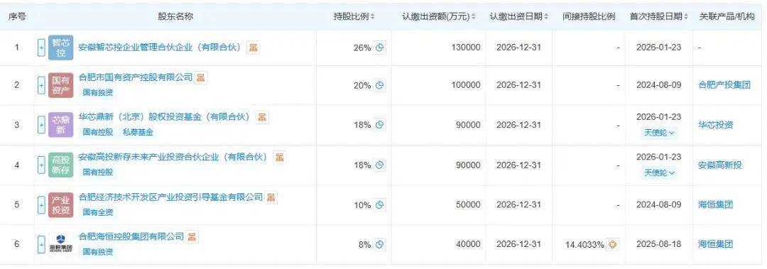 股东结构方面,新增了国家大基金三期旗下华芯鼎新(北京)股权投资基金(有限合伙)(以下简称“华芯鼎新”)、安徽高投新存未来产业投资合伙企业(有限合伙)(以下简称“安徽高新投”)、安徽智芯控企业管理合伙企业(有限合伙)(以下简称“安徽智芯控”)等股东。