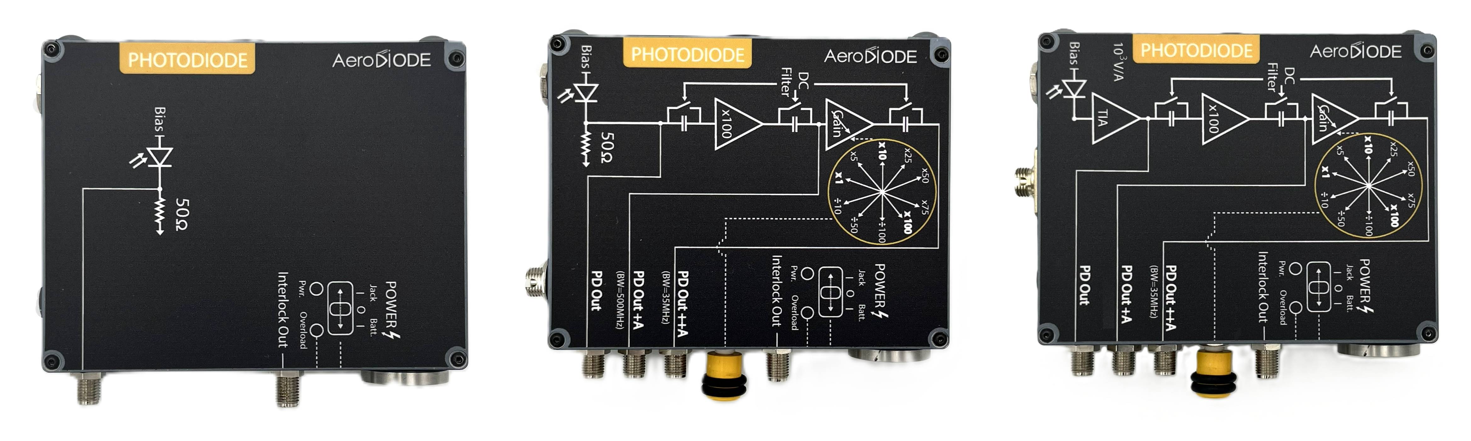 AeroDIODE 硅光电二极管解决方案既可提供独立元件,也可集成于3款可切换增益电子单元模块中。集成式解决方案具备多重输出接口,可根据您的具体需求进行定制。