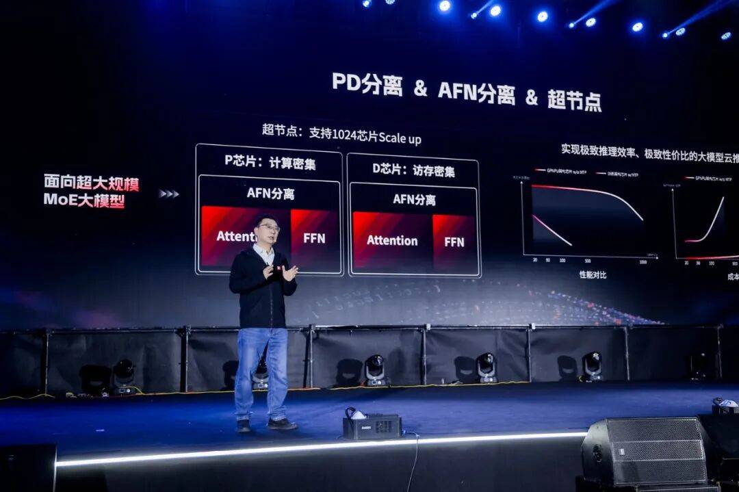 李爱军介绍,公司在芯片微架构层面针对Attention及AFN等计算特点进行细粒度分析,并在底层实现针对性优化。在一个包含1024颗芯片的超节点内,P芯片与D芯片可实现有效组合,以满足大模型云推理的集群化部署需求。