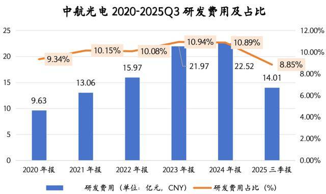 中航光电研发投入长期保持在营收的10%左右,2024年研发投入达22.52亿元,2025年三季度研发投入达14.01亿元。中航光电致力于耐环境光传输、深水密封、超高功率传输、大功率散热等“卡脖子”技术研究,多项技术达到国际领先水平。