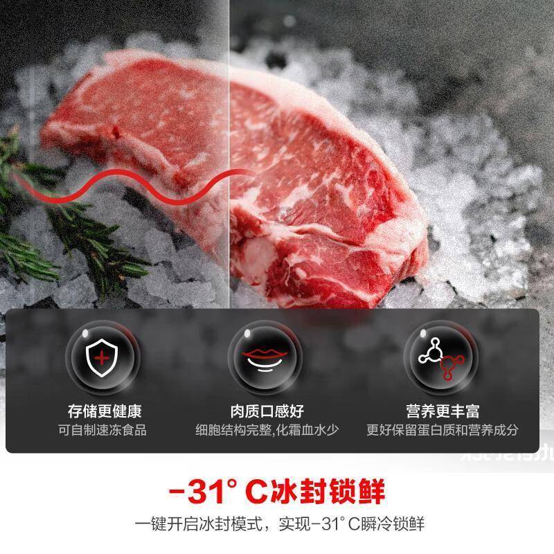双净系统+四区独立控温构成这台冰箱的保鲜内核。冷藏室搭载的蓝光SPA养鲜技术,通过模拟自然光波长延缓蔬果光合作用,实测菠菜存放7天后仍保持挺拔状态;冷冻室采用-25℃深冷速冻,三文鱼块解冻后肌理分明,血水渗出量减少62%。