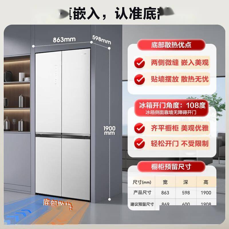 实测显示,安装后冰箱门与橱柜面几乎齐平,不会出现传统机型"凸出一截"的尴尬。特别设计的铰链系统让门体在狭窄过道也能完全打开,取放角落食材时无需"侧身芭蕾"。对于热衷极简风格的年轻家庭,这种"隐形收纳"能力直接提升了厨房整体颜值。