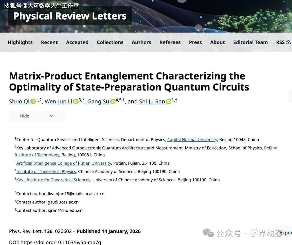 这项研究在冉仕举教授的指导下,与中国科学院理论物理研究所、莆田学院等多家单位合作完成,为量子电路深度优化难题提供了一个实用的解决方案。