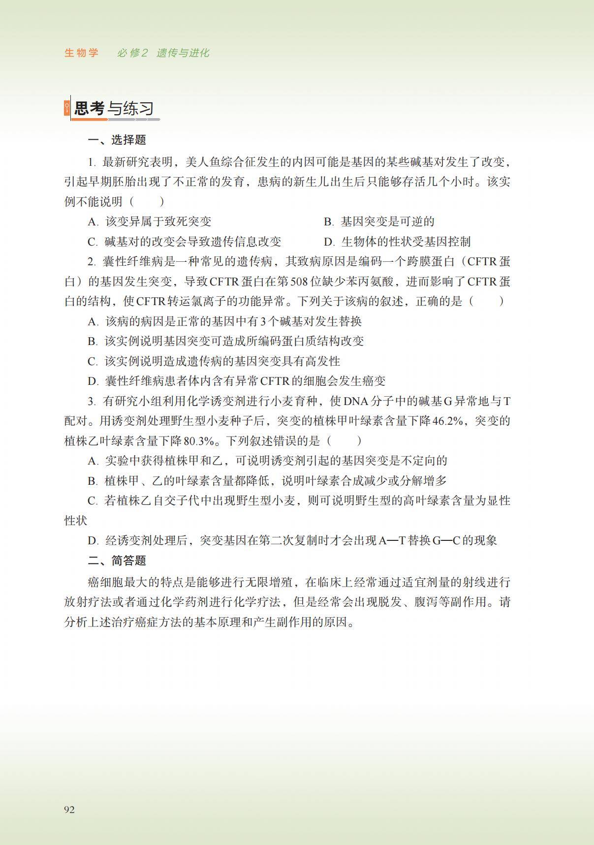 浙科版高中生物必修二电子课本在线阅读