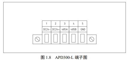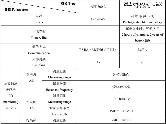 三合一有线局放传感器 APD300-L 接线端子示意图如下,针脚定义:端口 1:电源正极; 端口2:电源负极;端口 3:RS485 通信 A;端口 4:RS485 通信 B。通信接口 RS485,波特率 9600。 AE 幅值超过 AE 报警定值同时 AE 放电次数超过 10 次,AE 报警标志位致 1;TEV 幅值超过TEV 报警定值同时 TEV 放电次数超过 10 次,TEV 报警标志位致 1;UHF 幅值超过 UHF 报警定值同时 UHF 放电次数超过 10 次,UHF 报警标志位致 1。