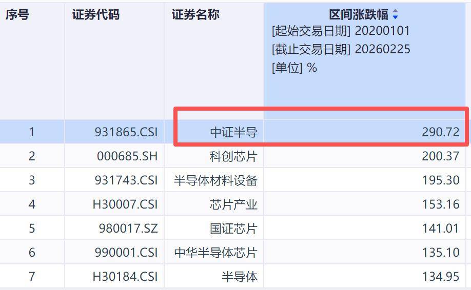 比如大家听过最多的科创芯片,直接跑输了中证半导将近90个百分点,差距还是很明显的。