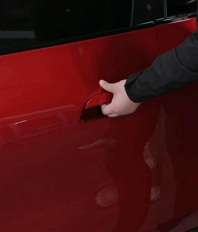 除了上一代的门锁微动开关,新一代 SU7 增加了外侧机械门把手,可以看到门把手部分是可以拉出来的。