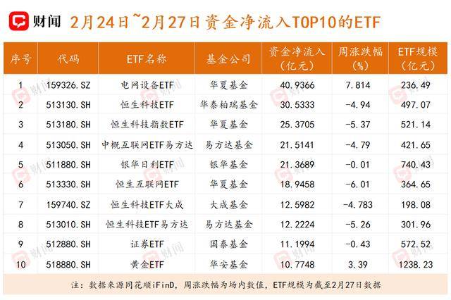 电网设备ETF单周规模增长超50亿元 宽基ETF规模继续下滑