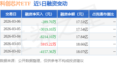 证券之星消息,3月6日,科创芯片ETF(588200)融资买入9908.58万元,融资偿还1.02亿元,融资净卖出289.7万元,融资余额17.51亿元。
