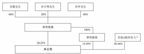 IPO前,肖毅、肖申、肖日明三人通过华明集团、华明发展,合计持股约43.54%,为控股股东、实际控制人。