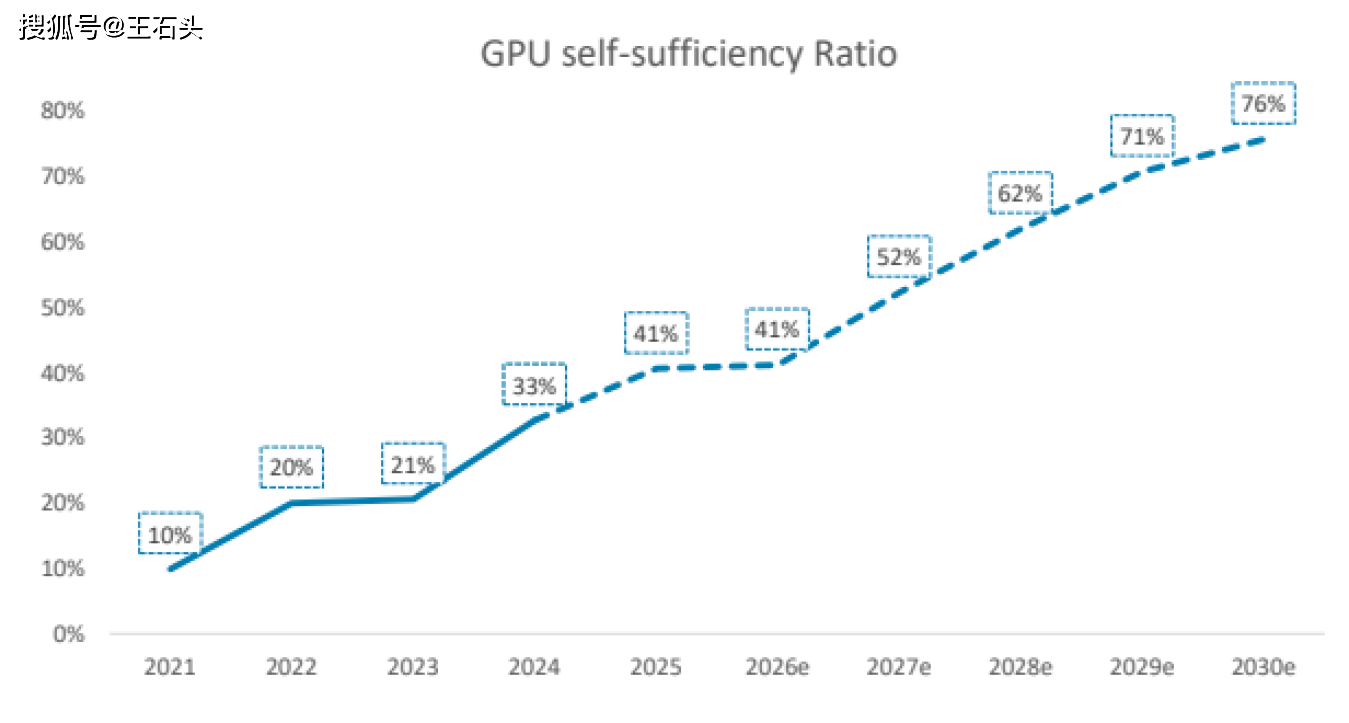 根据他们的测算,到2030年,咱们国家AI GPU芯片的自给率将从2024年的33%一口气飙升到76%。