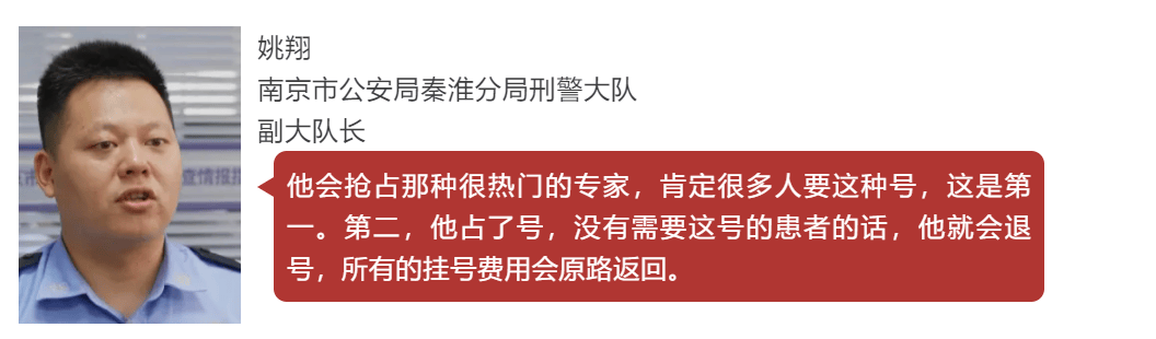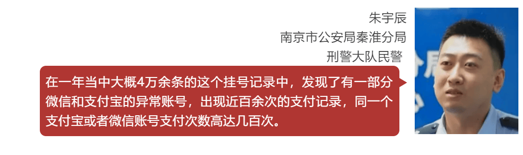 警方调取了医院近一年内的热门专家相关挂号记录,包括其中的实际付款人、就诊人等信息,经过梳理和研判,发现了异常。