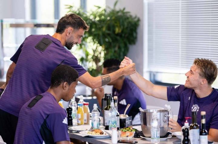 直播吧07月10日讯 据曼联官方消息,B费、卡塞米罗、达洛特、霍伊伦、多古、乌加特、巴因德尔等球员今天已经回到俱乐部,开始季前训练。