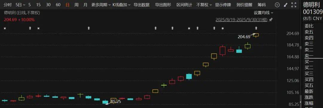 近日A股市场芯片股表现亮眼。其中,德明利(001309)近日收获多个涨停板,股价突破200元,创出历史新高,9月份累计涨幅达117%。