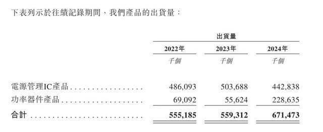 2022年-2024年,芯迈半导体电源管理IC产品的出货量分别为4.86亿个、5.04亿个及4.43亿股,功率器件的出货量分别为6909.2万个、5562.4万个及2.29亿个。