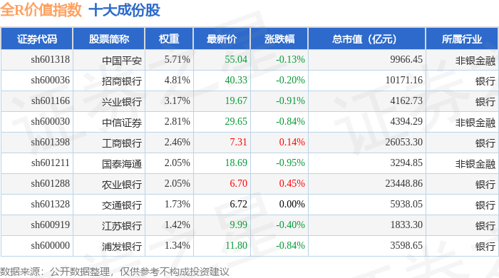 证券之星消息,10月9日,全R价值(000060)指数报收于4364.73点,涨1.33%,成交5571.76亿元,换手率1.1%。当日该指数成份股中,上涨的有282家,西部超导以20.0%的涨幅领涨,下跌的有91家,剑桥科技以10.0%的跌幅领跌。