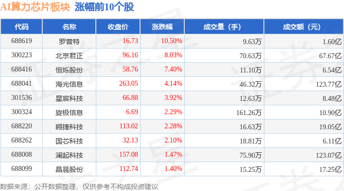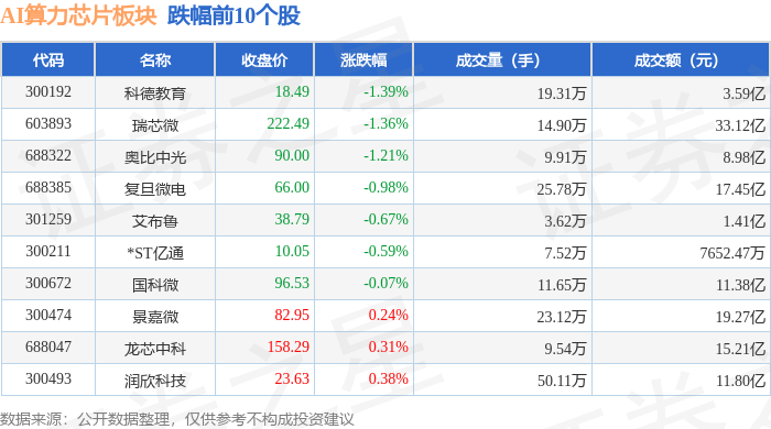 从资金流向上来看,当日AI算力芯片板块主力资金净流出10.5亿元,游资资金净流入3.63亿元,散户资金净流入6.87亿元。AI算力芯片板块个股资金流向见下表: