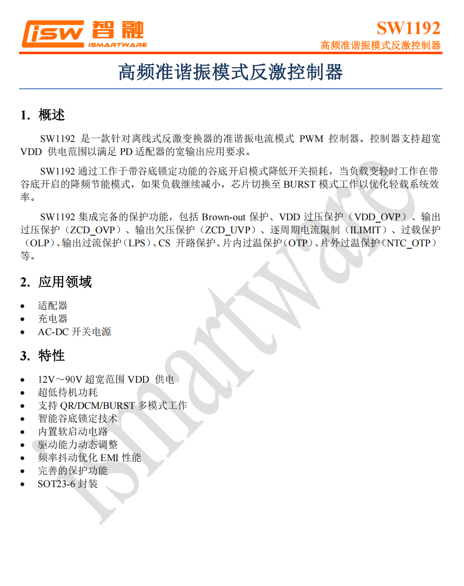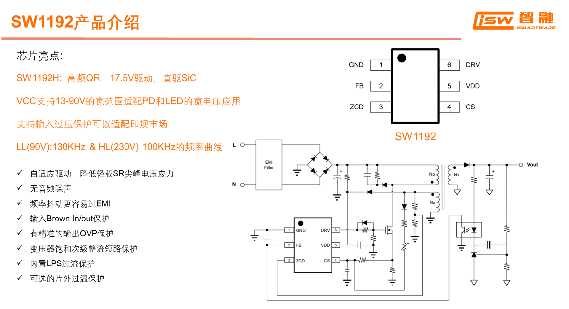 1、智融科技推出支持宽电压输出直驱 SiC 的 PWM 控制器 SW1192H