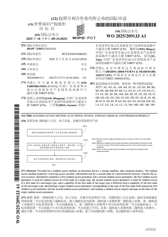 证券之星消息,根据企查查数据显示中兴通讯(000063)公布了一项国际专利申请,专利名为“随机接入方法、电子设备、存储介质及程序产品”,专利申请号为PCT/CN2025/082021,国际公布日为2025年10月9日。