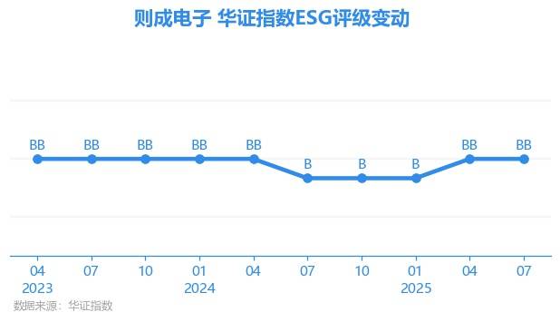 日前,华证指数公布了新一期(2025年7月31日)的ESG评级结果,则成电子(837821.BJ)获得BB评级(华证指数评级为C起至AAA九档,C为最低档,AAA为其最高一级评级/AA为其第二档),上一期(2025年4月30日)ESG评级为BB。本期ESG评级在529家电子设备、仪器和元件行业A股上市公司中排名第188(上一期排名第181)。