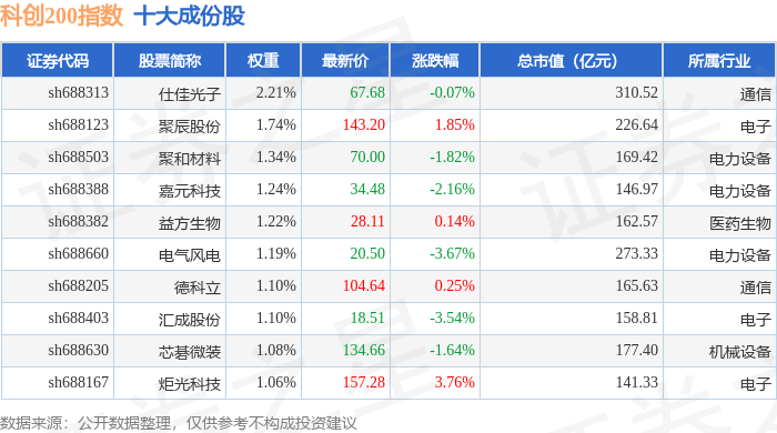 证券之星消息,10月13日,科创200(000699)指数报收于1287.12点,涨0.58%,成交631.31亿元,换手率3.26%。当日该指数成份股中,上涨的有103家,路维光电以20.0%的涨幅领涨,下跌的有95家,伟创电气以7.15%的跌幅领跌。