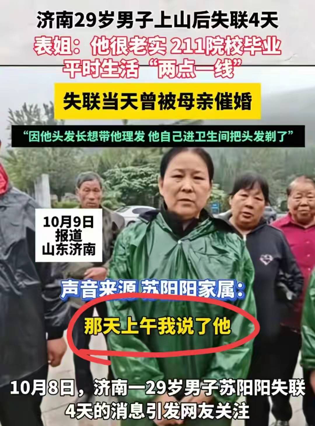 要说最伤心、自责的人,大概就是苏阳阳的母亲了吧。如果那一天并没有和他起口角,那么苏阳阳就不会外出爬山散心。如果苏阳阳没有接那一个电话、没有开视频会议,手机就不会没电。