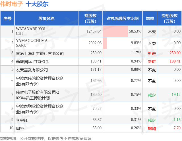 根据伟时电子2025年中报公布的十大股东详情如下: