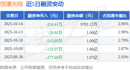 证券之星消息,10月14日,信濠光电(301051)融资买入280.11万元,融资偿还504.52万元,融资净卖出224.41万元,融资余额9781.13万元。