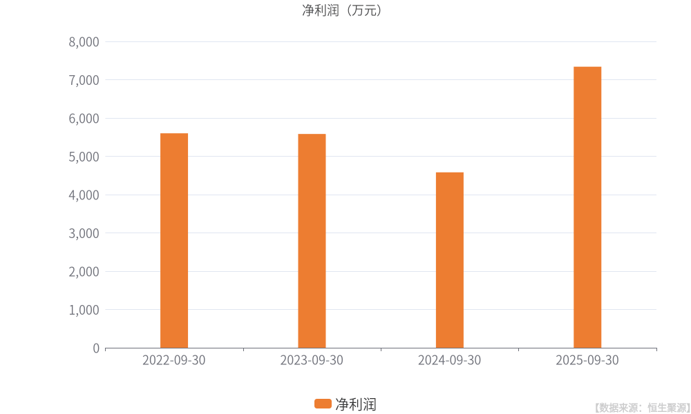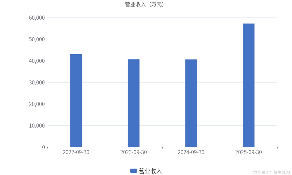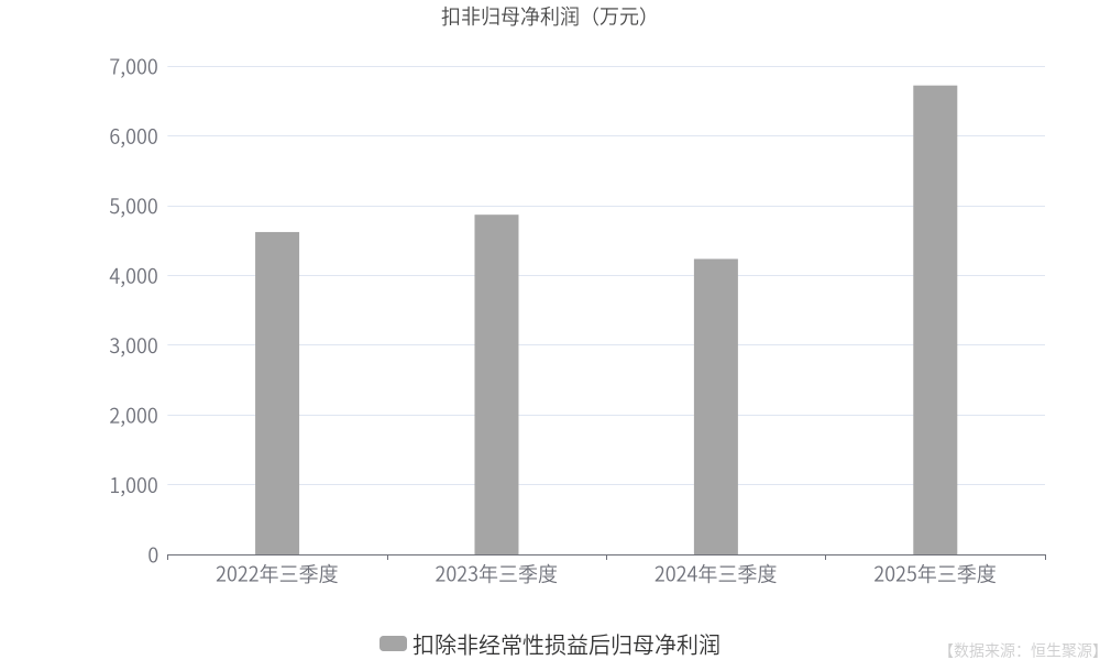 截止日期 营业收入(万元) 营收同比(%) 净利润(万元) 净利润同比(%) 扣除非经常性损益后归母净利润(万元) 扣非归母净利润同比(%) 每股收益(元/股) 2022年三季度 43022.38 -6.41 5600.27 -0.86 4620.22 -11.57 0.89 2023年三季度 40631.5 -5.56 5582.62 -0.32 4868.86 5.38 0.76 2024年三季度 40583.95 -0.12 4581.26 -17.94 4234.74 -13.02 0.63 2025年三季度 57212.69 40.97 7339.41 60.21 6721.01 58.71 0.72