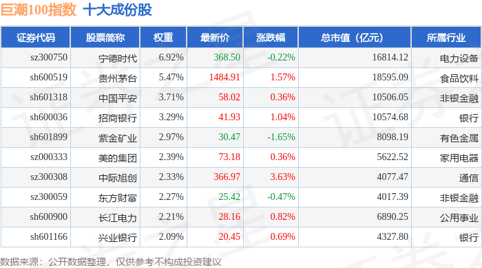 巨潮100(399313)指数十大成份股详情如下: