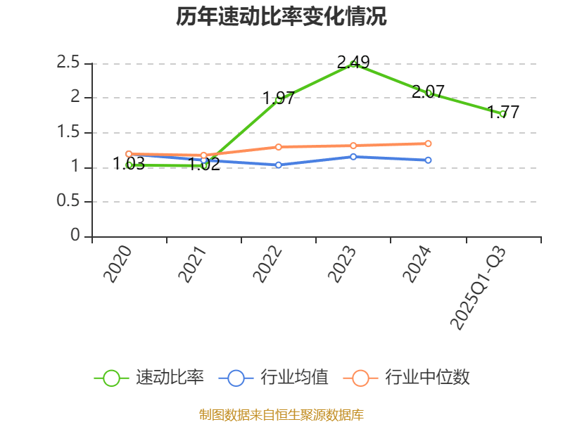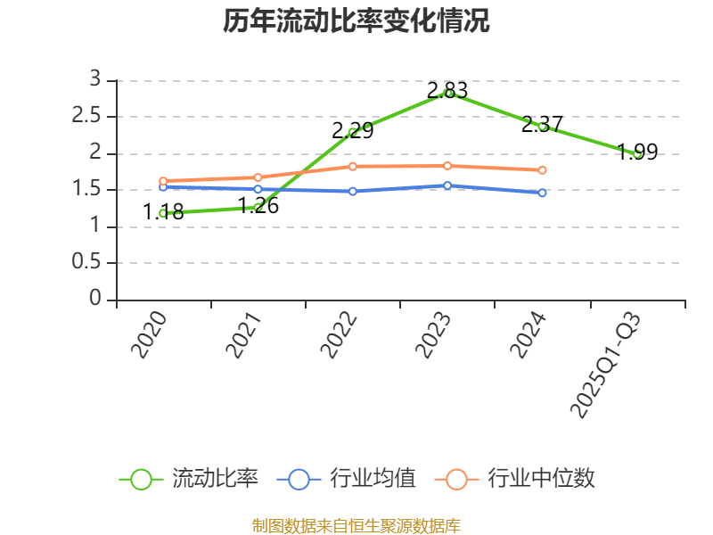 2025年前三季度,公司流动比率为1.99,速动比率为1.77。