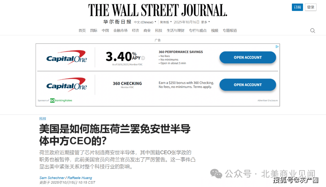 WSJ指出,发生在安世半导体的接管和罢免事件凸显出美中紧张关系对整个科技行业的影响,也表明美国正毫不避讳地利用其贸易实力拉拢盟友站队。