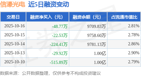 证券之星消息,10月16日,信濠光电(301051)融资买入212.53万元,融资偿还261.3万元,融资净卖出48.77万元,融资余额9709.83万元。