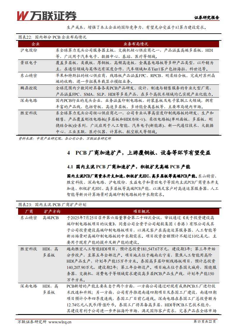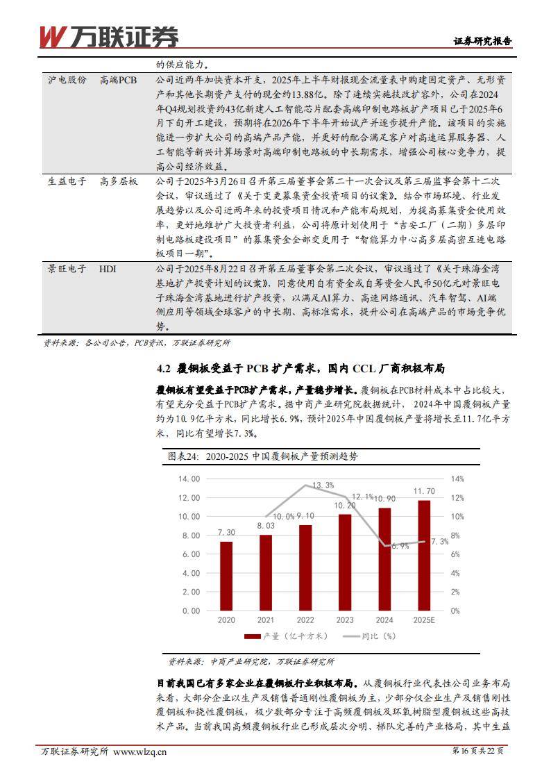 景旺电子:2025年启动50亿元扩产计划,聚焦AI算力、高速通讯等高标准需求。