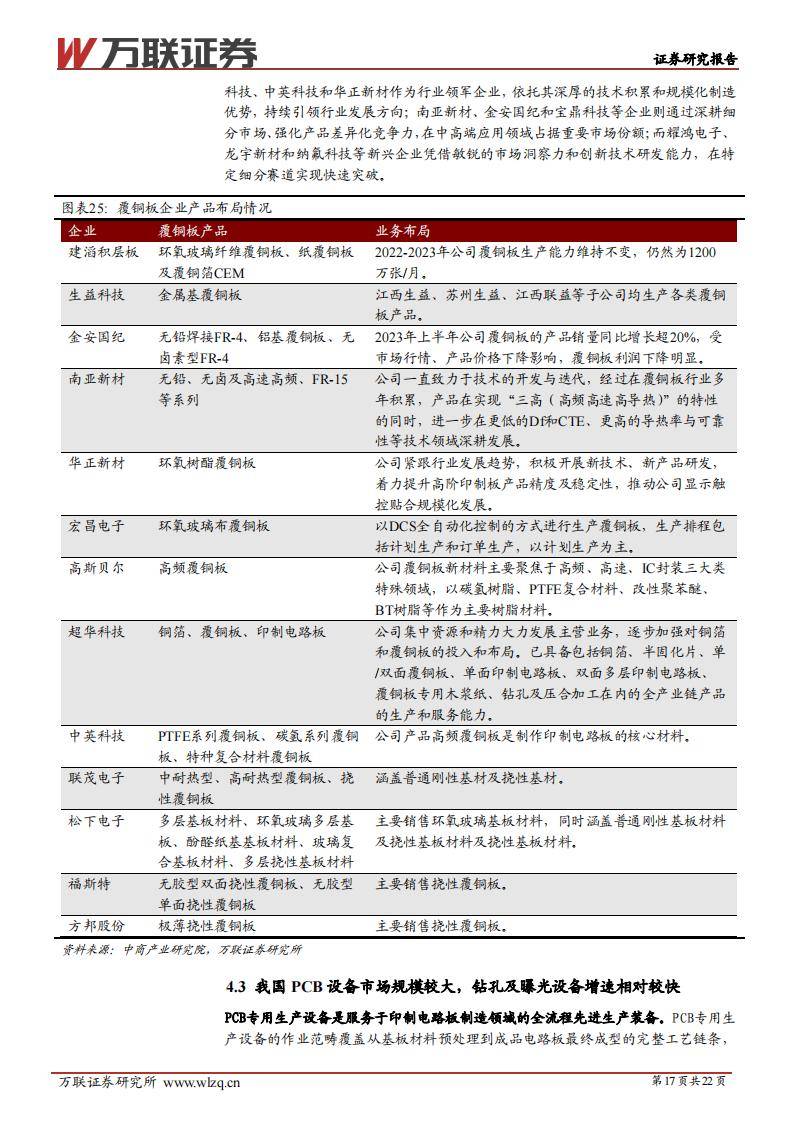 覆铜板材料:生益科技、金安国纪、南亚新材、华正新材、宏昌电子、超华科技、中英科技、联茂电子、松下电子、福斯特、方邦股份、高斯贝尔