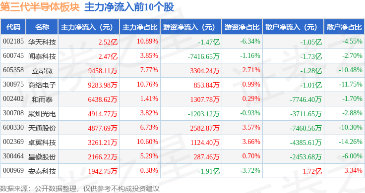 从资金流向上来看,当日第三代半导体板块主力资金净流出114.3亿元,游资资金净流入27.57亿元,散户资金净流入86.74亿元。第三代半导体板块个股资金流向见下表: