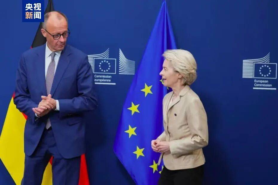 德国总理默茨(左)与欧盟委员会主席冯德莱恩
