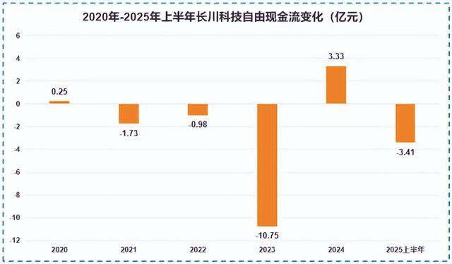 然而,研发费用的持续增长也在侵蚀长川科技的现金流。由于企业研发支出会直接影响经营性现金流,2020-2025年上半年,公司自由现金流基本为负,反映出资金流动性的一定压力。