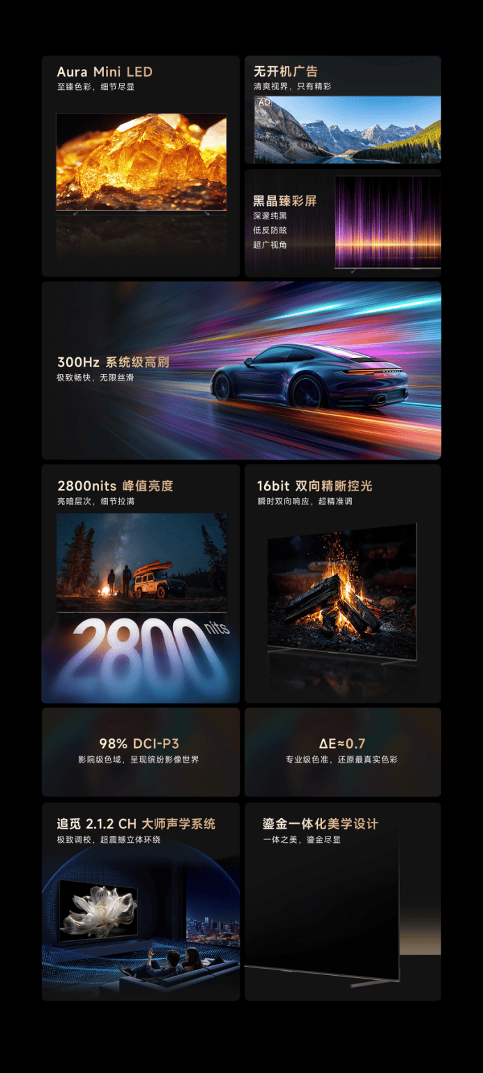S100系列此前在德国IFA2025展上就备受瞩目,此次广交会亮相同样吸睛。该系列采用 AuraMini LED分区色彩管理技术,在保证“黄金亮度”的同时避免眩光,符合HDR10与杜比视界专业影院标准,在家就能享受影院级画质。搭载的Dreamind™ Pro AI芯片堪称“老片救星”,能将2K内容智能优化至近4K水准,让经典影视重新焕发活力。
