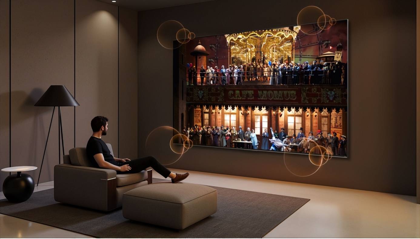 最具突破性的是其声学设计,首次将完整的4.1.2声道Soundbar内置在纤薄机身中,11个发声单元覆盖270°物理声场,70W峰值功率支持杜比全景声,环绕音效堪比独立家庭影院音响。无边框一体化外观搭配144Hz高刷新率,兼顾美学与实用,适配各类家居环境。