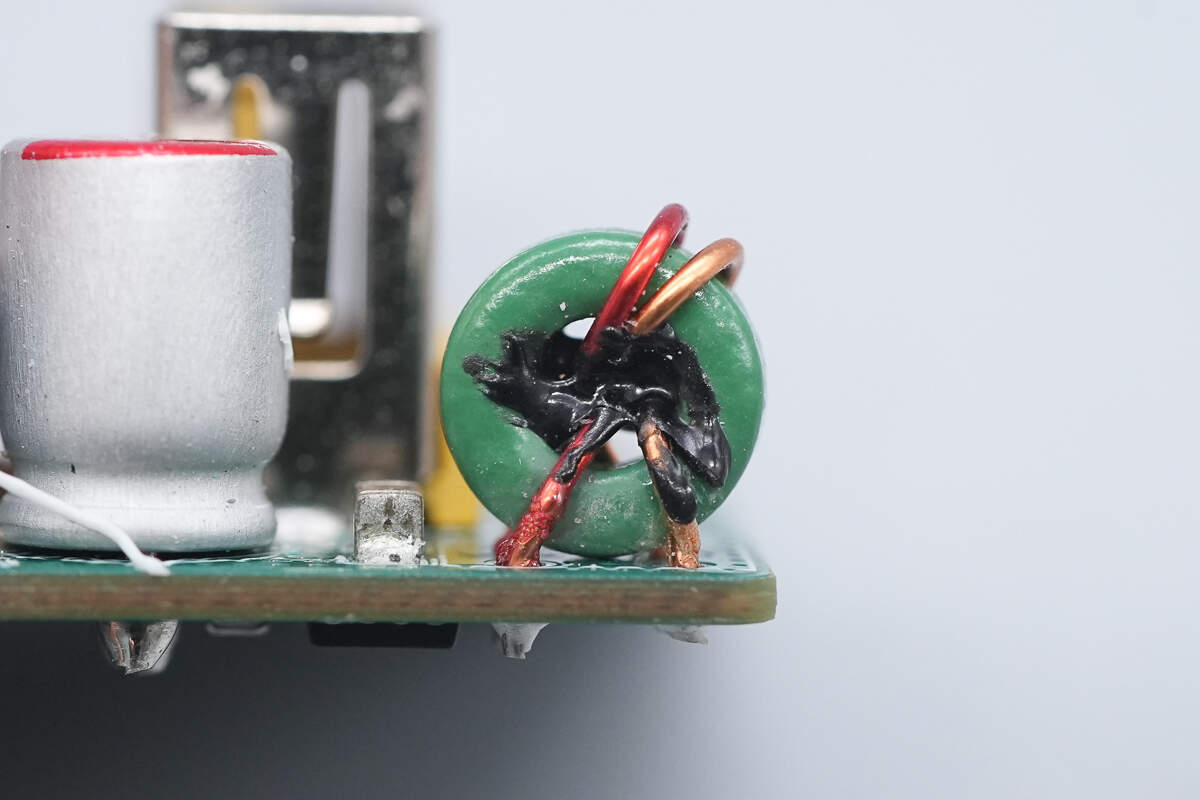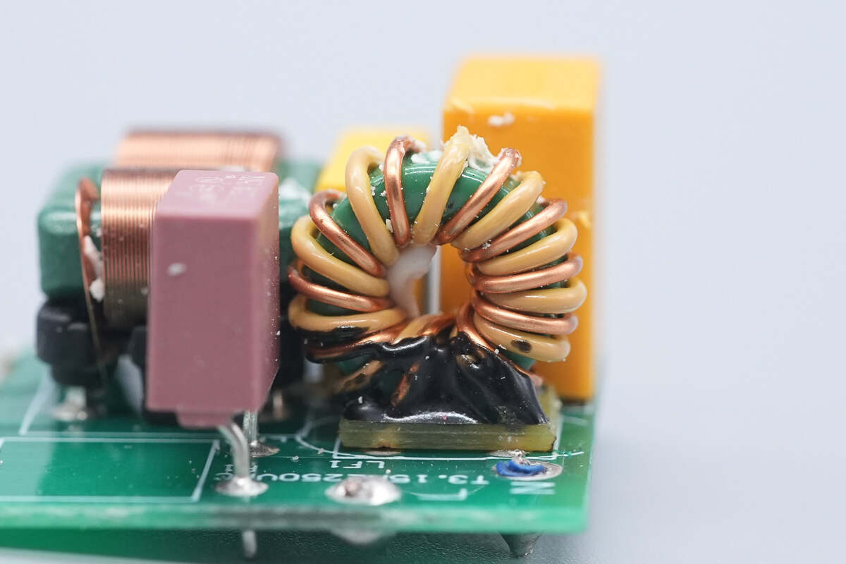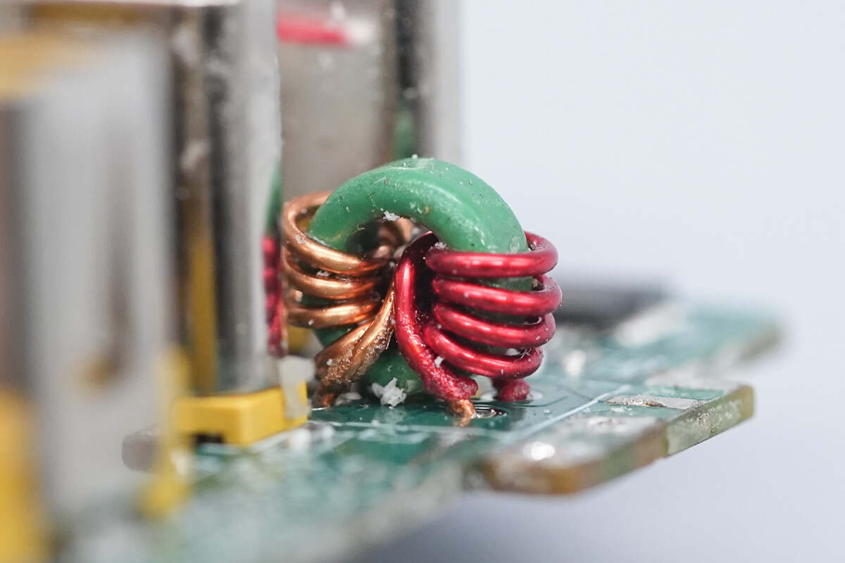 另一颗共模电感扁平铜带绕制,两级设计更好滤除EMI干扰。