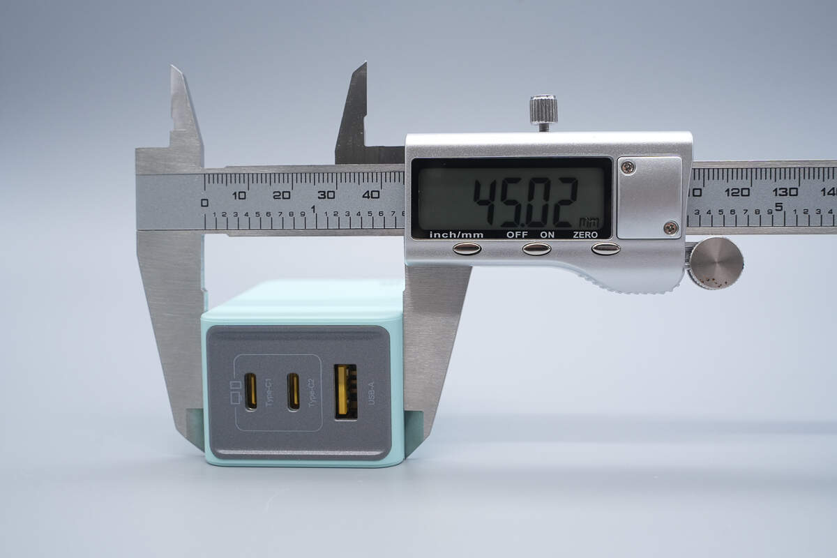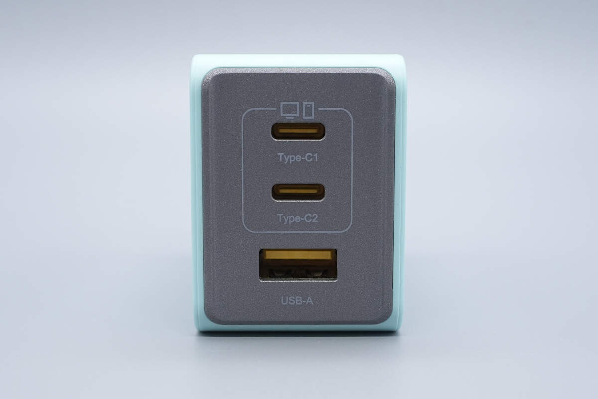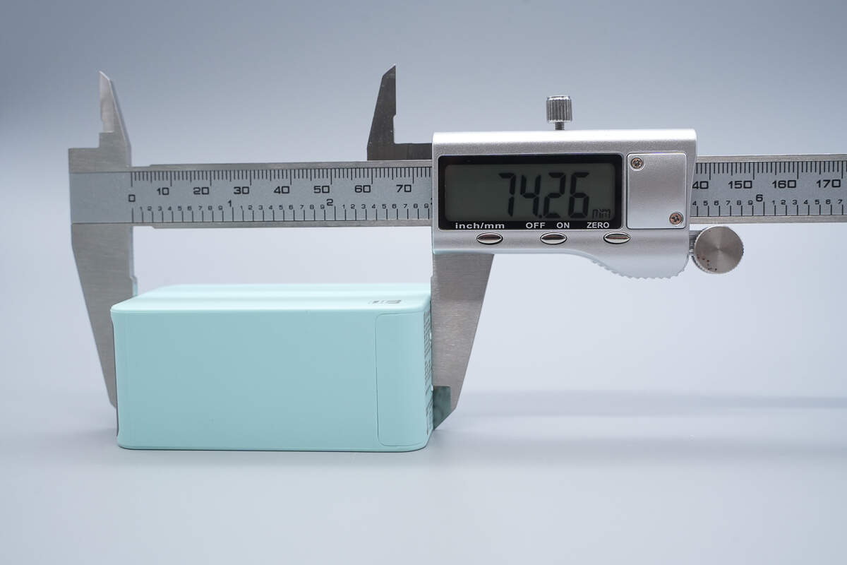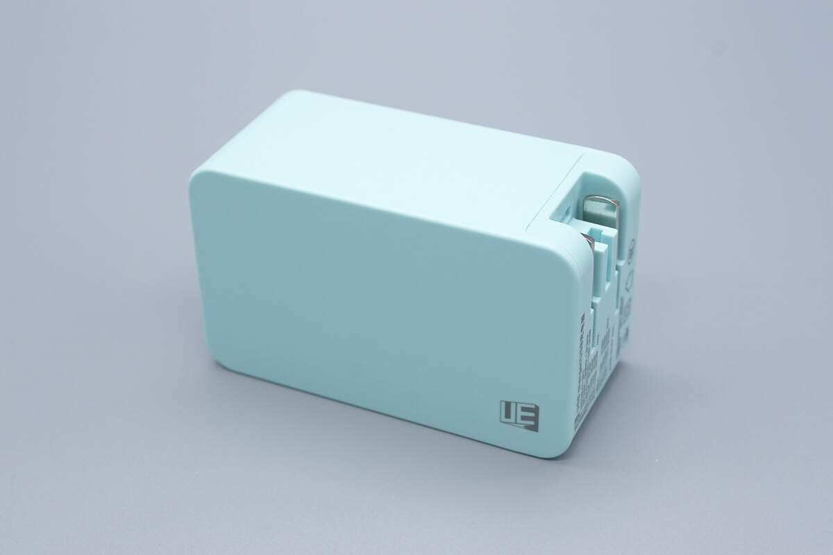 富华电子100W氮化镓充电器采用和65W款相同设计语言,就连三围也完全相同,不过这款绿色配色看上去则相当小清新。