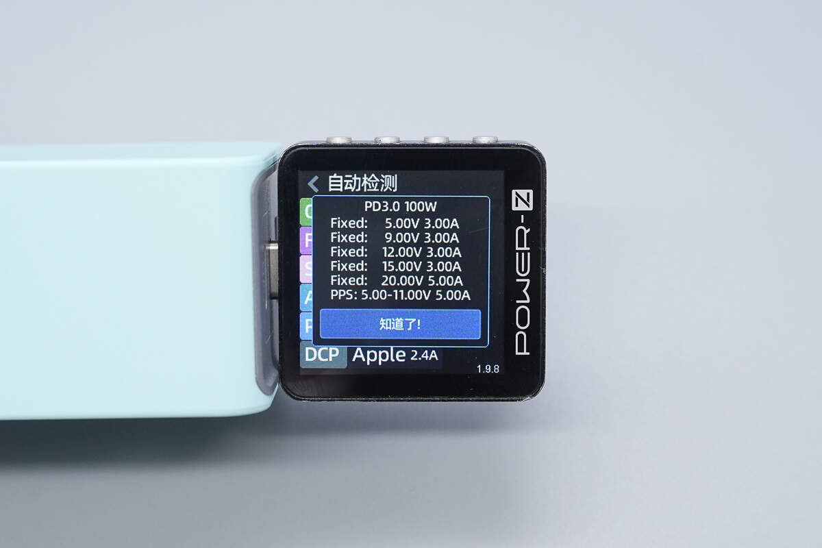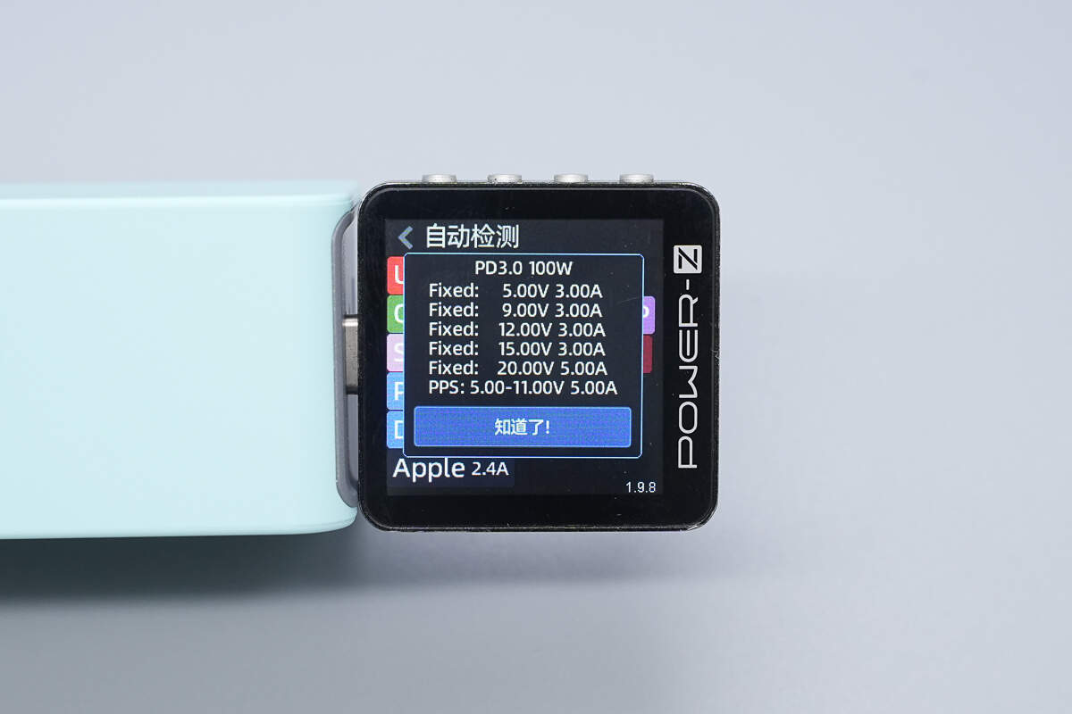并且具备5V3A、9V3A、12V3A、15V3A、20V5A五组固定电压档位,以及5-11V5A一组PPS电压档位。