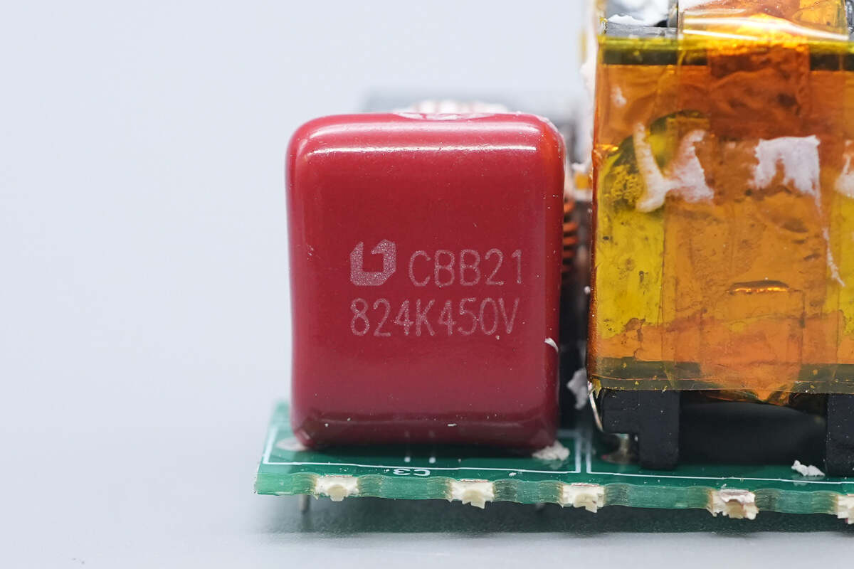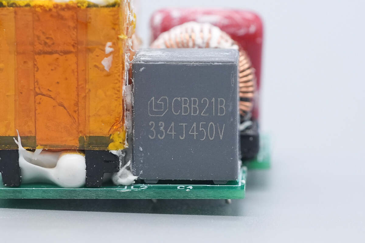 另一颗CBB21B薄膜滤波电容也是来自塑镕,规格为450V0.33μF。