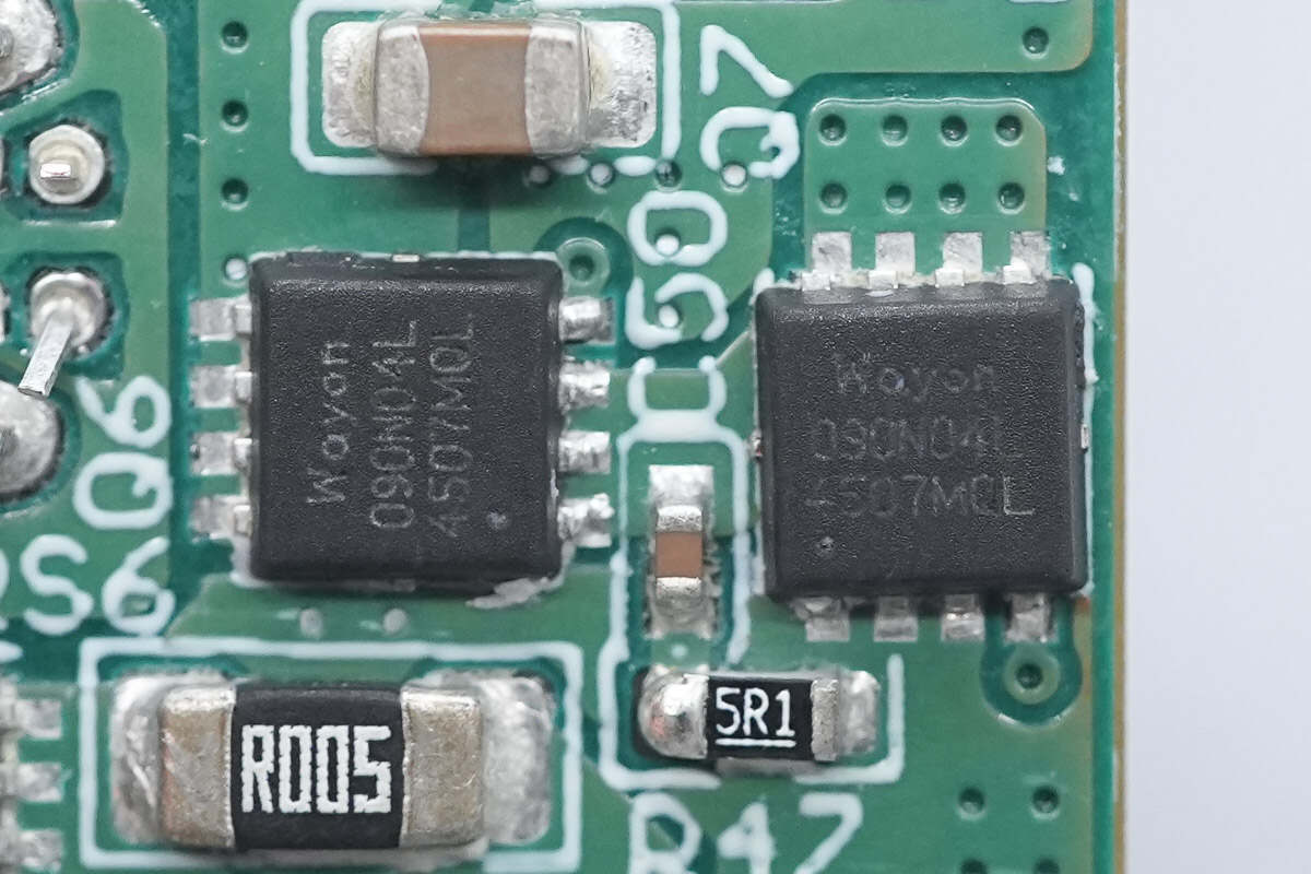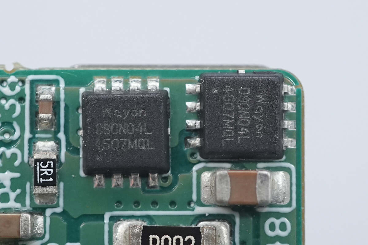 外挂两颗同步降压开关管同样是采用维安WMB090N04LG2。
