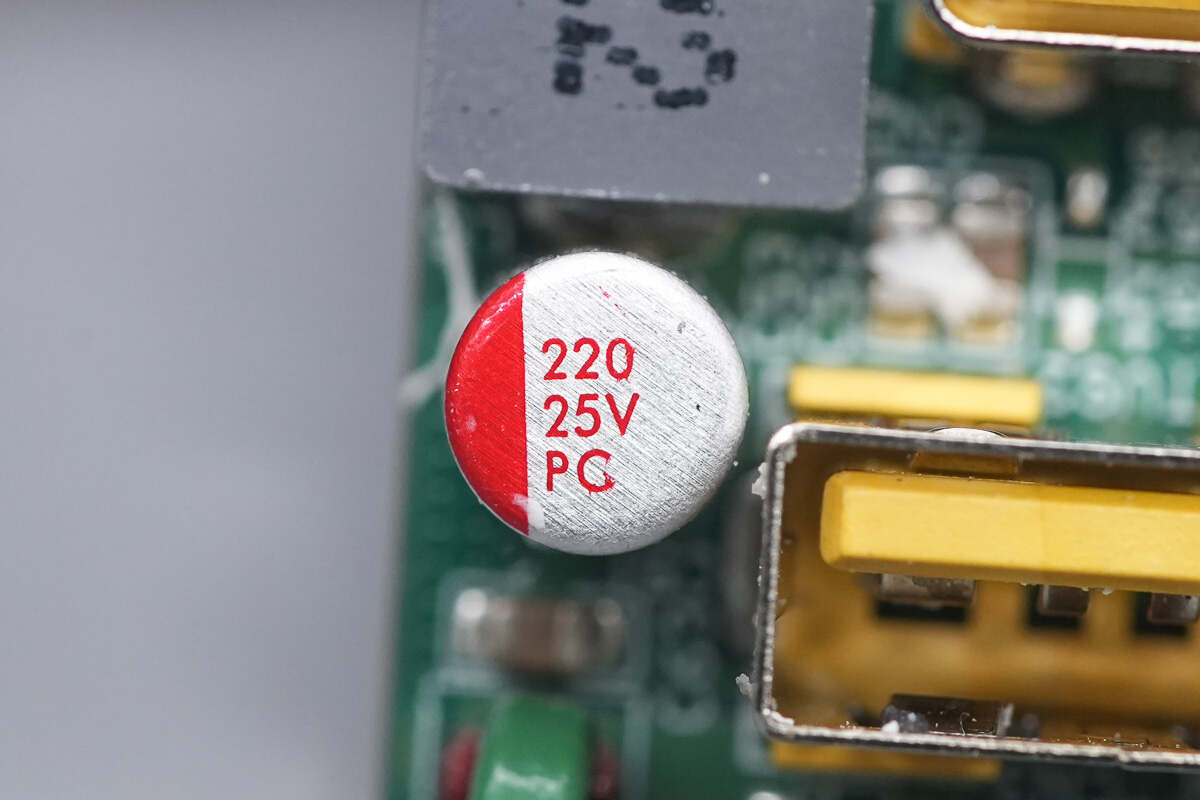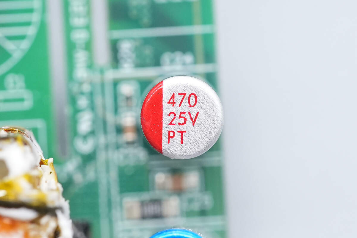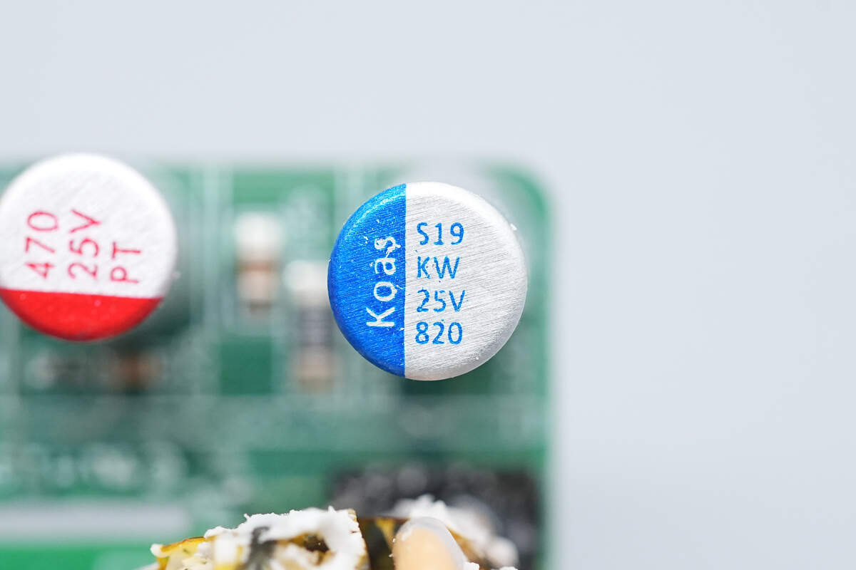 输出滤波固态电容来自东佳,规格为25V820μF。