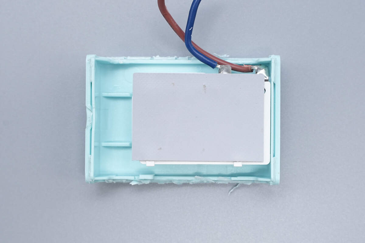 此外塑料壳上还贴有铜箔和导热垫组成的散热贴,用于帮助输入端小板散热。