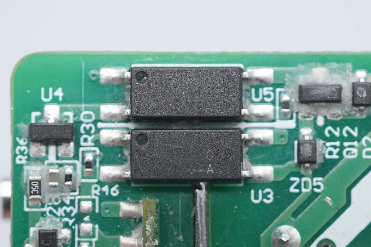 两颗TD 1019光耦特写,用于输出电压反馈和过压保护。