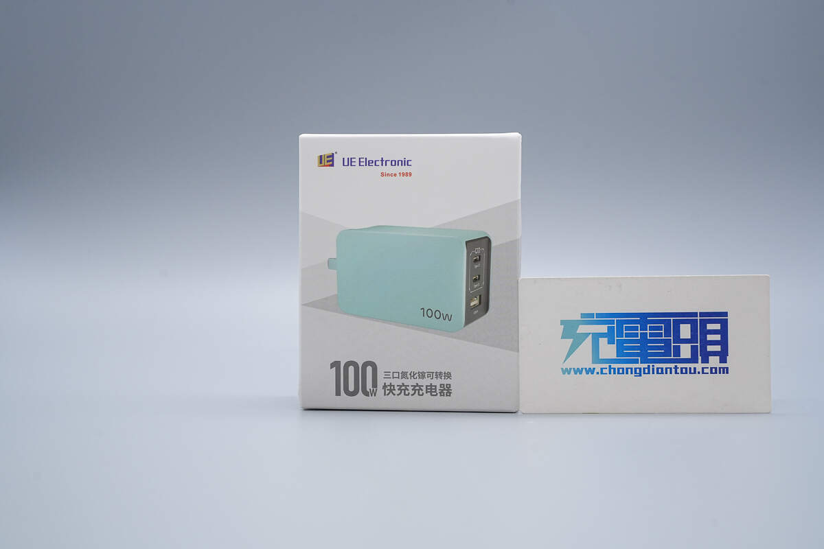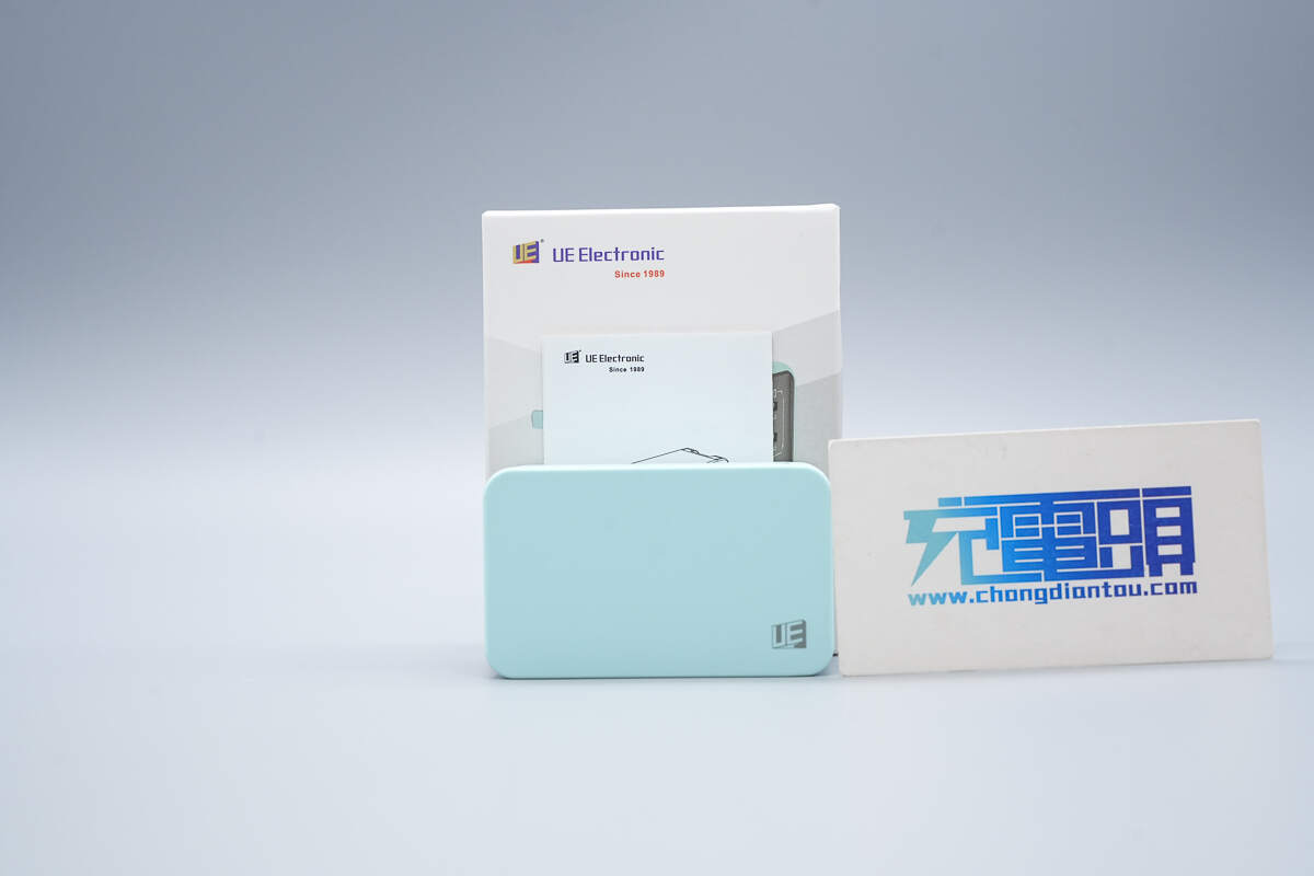 包装盒正面印有UE ELectronic品牌、充电器外观图以及名称。